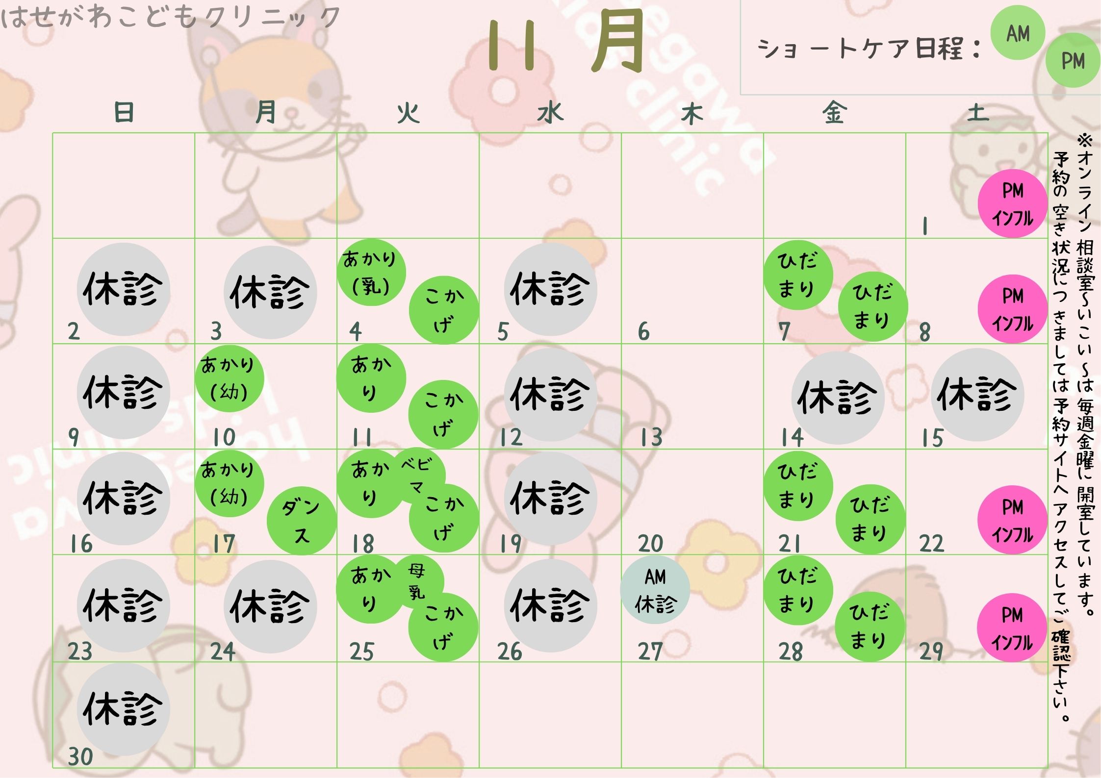 ※11月3日、24日は月曜日ですが祝日休診のためお休みです