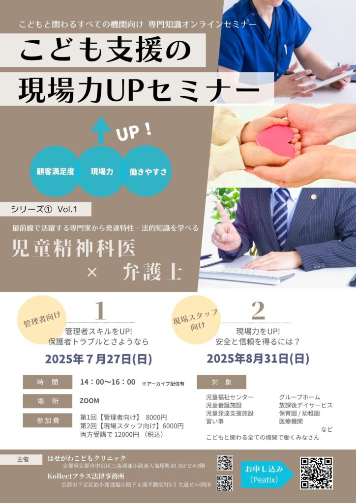 ③7月31日(日)と8月27日(日)に 開催するWEBセミナー 「こども支援の現場力UPセミナー」 チラシを作りました。