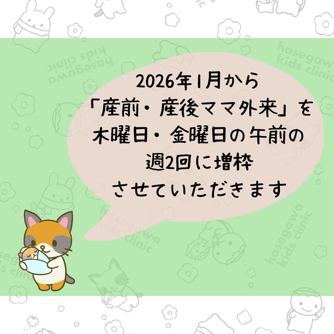 2026年1月から「産前・産後ママ外来」の枠が拡大して金曜日午前も受診していただけます。