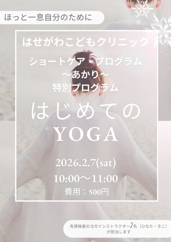 2026年2月7日(土)にショートケア・プログラム「あかり」特別プログラム「はじめてのYOGA」を開催します。